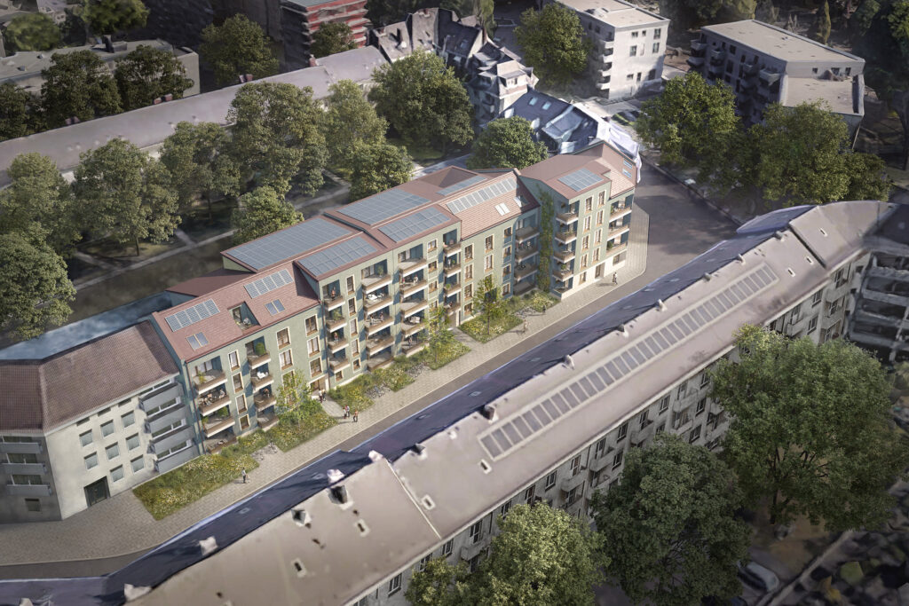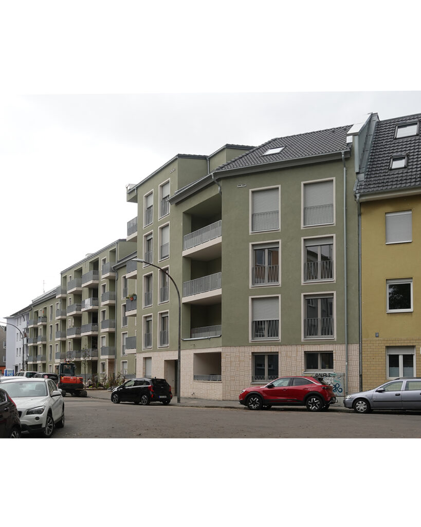 Ein weiteres Wohnhaus haben wir in Köln-Mülheim für die GAG AG fertiggestellt. Das Gebäude in der Kieler Straße in Köln-Mülheim orientiert sich an den vorhandenen Grundstücksgrenzen und nimmt mit seinen 40 Wohnungen die typischen Zuschnitte der Nachbarschaft auf. Das Grüne Haus fügt sich selbstverständlich in das bestehende Milieu ein. Die Architektur ist unaufdringlich und wirkt, als sei sie schon immer ein vertrauter Teil des Veedels gewesen.
